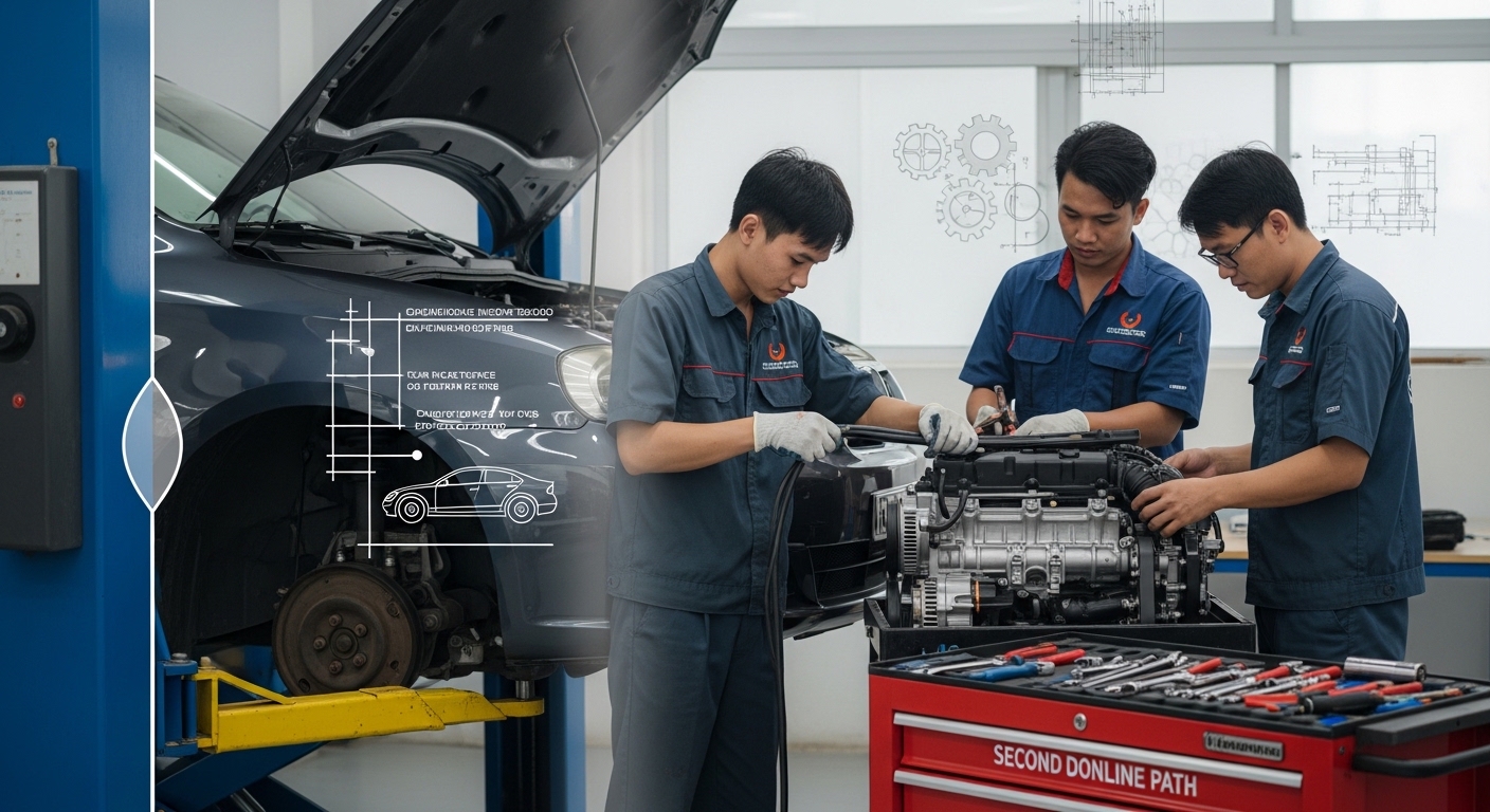 Bạn đang tìm kiếm con đường học Cao đẳng Ô Tô để nâng cao kỹ năng chuyên môn mà vẫn đảm bảo công việc hiện tại? Tại khu vực Bến Tre, hệ Liên thông và Văn bằng 2 chính là giải pháp tối ưu, giúp người học vừa tiếp cận kiến thức thực tiễn ngành ô tô vừa linh hoạt sắp xếp thời gian. Với nhu cầu nhân lực kỹ thuật ô tô ngày càng tăng cao nhờ sự phát triển của ngành công nghiệp ô tô Việt Nam, việc lựa chọn trường đào tạo uy tín tại Bến Tre sẽ mở ra cánh cửa việc làm ổn định và thu nhập hấp dẫn.