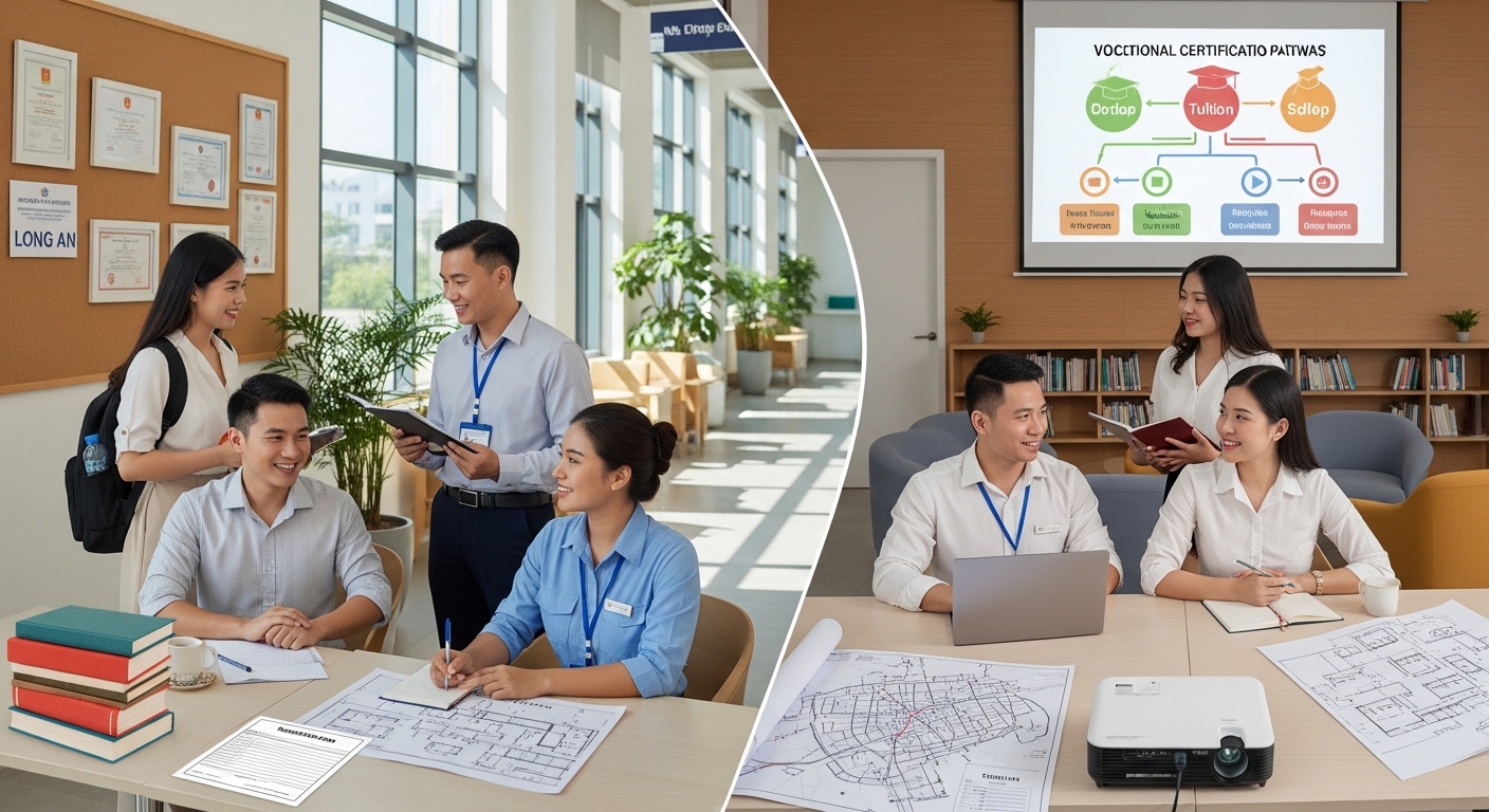 Bài viết dưới đây sẽ cung cấp cho bạn một cái nhìn chuyên sâu và toàn diện nhất về chương trình học này tại Long An, đặc biệt tập trung vào các vấn đề cốt lõi: hệ thống cấp bậc, học phí, các trường đào tạo và tính linh hoạt trong quá trình học tập.
