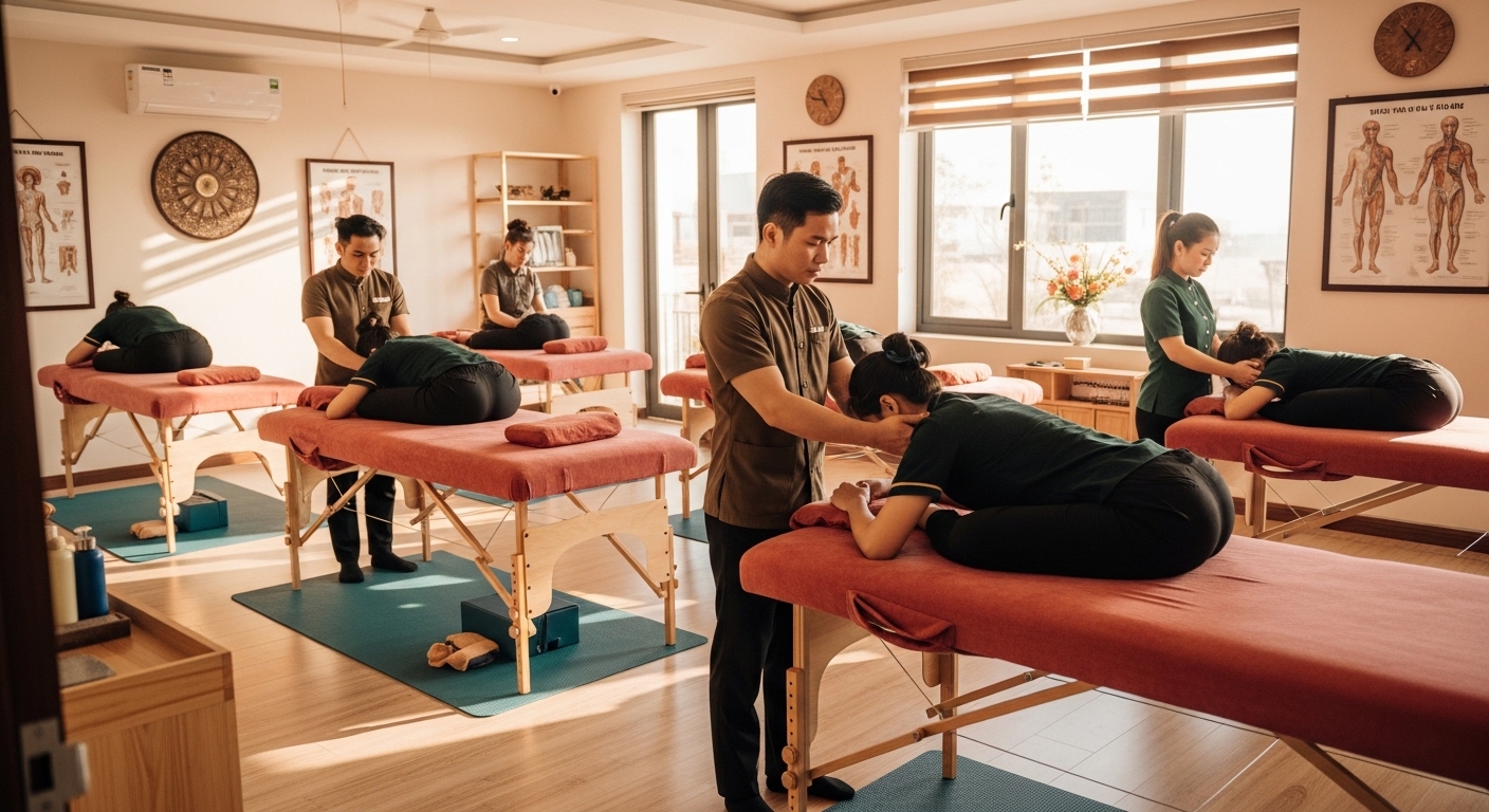 Trong bối cảnh nhu cầu chăm sóc sức khỏe cộng đồng ngày càng gia tăng, nghề xoa bóp bấm huyệt đang trở thành một lĩnh vực thu hút đông đảo người lao động quan tâm. Đặc biệt tại Ninh Thuận, việc sở hữu một Chứng chỉ Xoa bóp bấm huyệt tại Ninh Thuận không chỉ là tấm vé mở ra cơ hội việc làm ổn định mà còn khẳng định năng lực chuyên môn trước thị trường lao động ngày càng khắt khe. Bài viết dưới đây sẽ cung cấp đầy đủ thông tin về các đơn vị đào tạo hàng đầu, chi phí học tập và lộ trình tuyển sinh mới nhất.