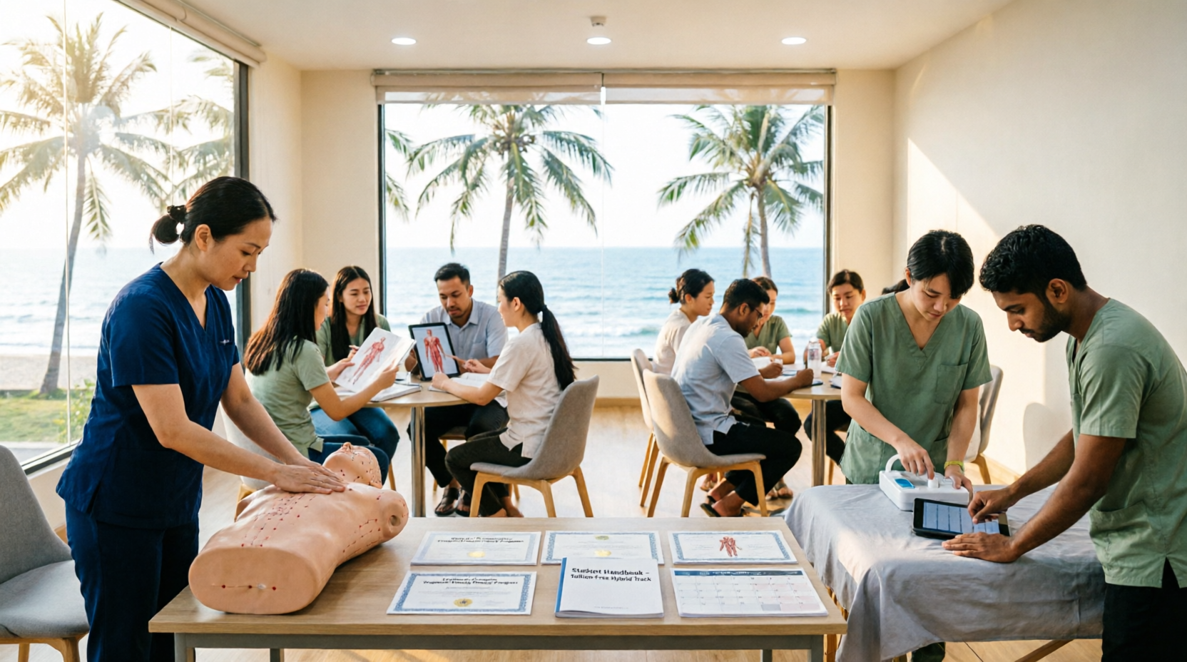 Chương trình vừa học vừa làm chứng chỉ xoa bóp bấm huyệt tại Bình Thuận chính là giải pháp hoàn hảo cho những ai đang đi làm. Lịch học được sắp xếp thông minh: lý thuyết học online hoặc buổi tối, thực hành cuối tuần hoặc linh hoạt theo ca làm việc của bạn. Bạn không cần nghỉ việc, không cần chuyển chỗ ở, chỉ cần kiên trì 2-3 buổi/tuần là hoàn thành.