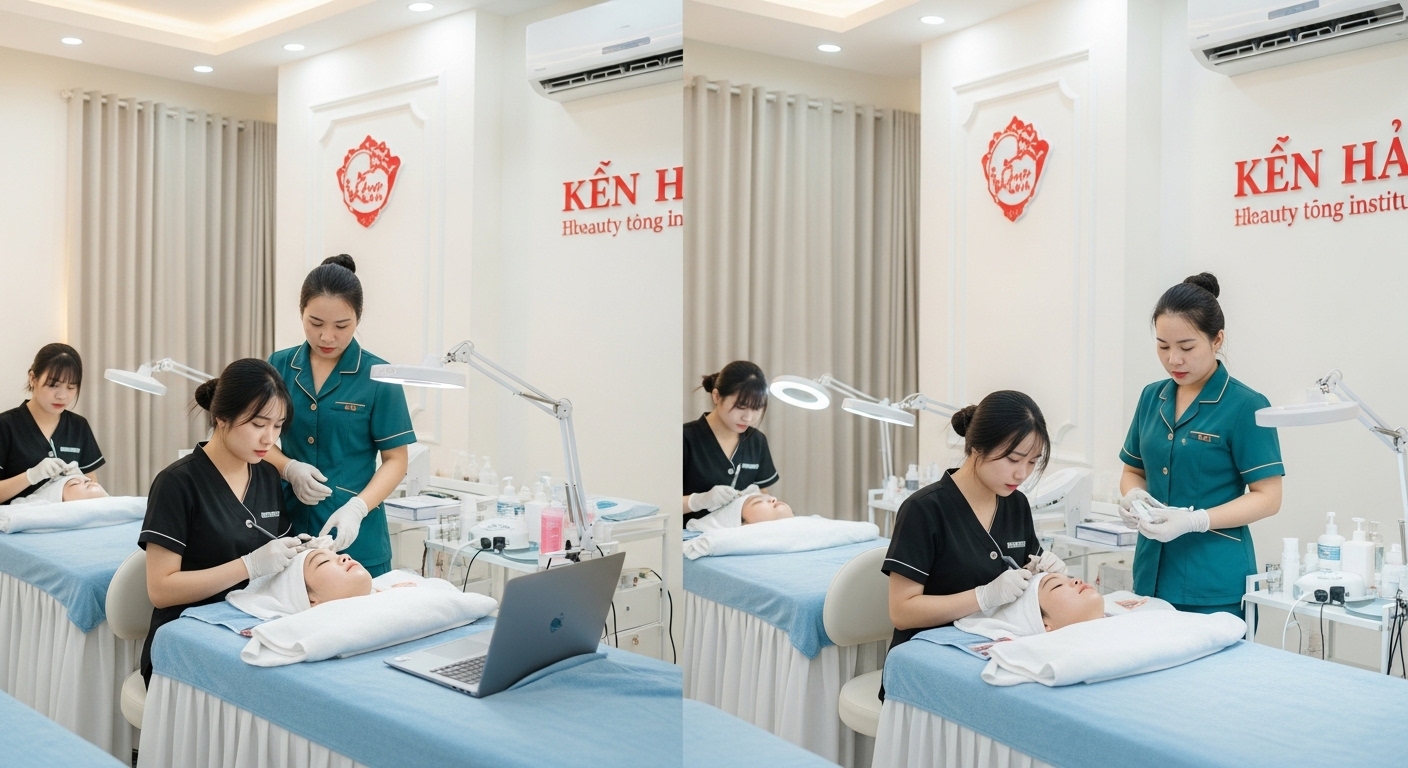 - DIVA Academy: Học phí dao động 5-30 triệu tùy khóa, mạnh về chăm sóc da và phun xăm. Chương trình 80% thực hành, hỗ trợ ký túc xá và giới thiệu việc làm. Phù hợp vừa học vừa làm với lịch linh hoạt.