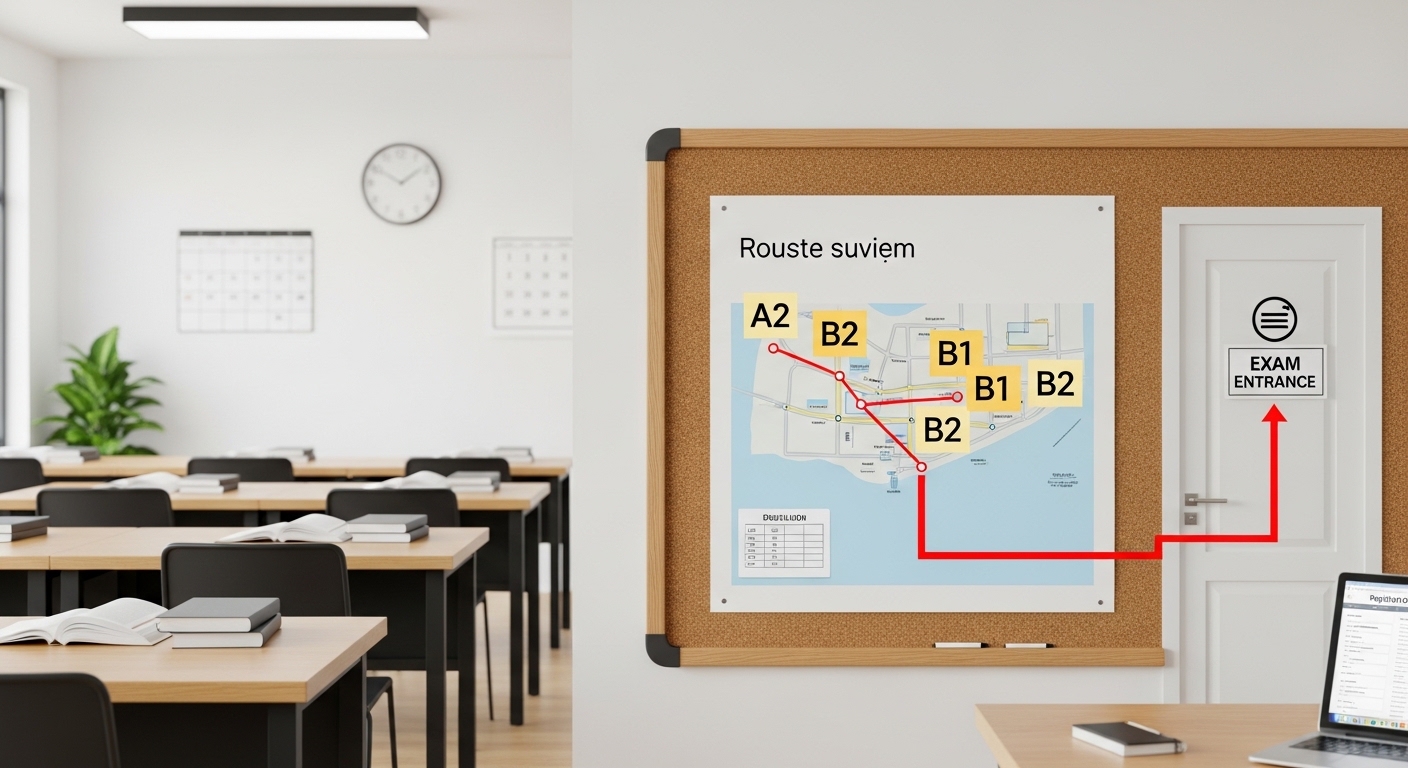 Lưu ý quan trọng: A2 phù hợp người mới bắt đầu hoặc cần chứng chỉ nhanh. B1 là mức phổ biến nhất cho sinh viên. B2 đòi hỏi vốn từ vựng 3.000-4.000 từ và kỹ năng học thuật cao.
