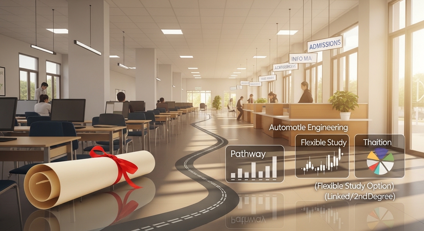 Tuyển sinh: Xét tuyển dựa trên kết quả kỳ thi tốt nghiệp THPT hoặc bảng điểm Trung cấp. Hồ sơ nhận từ tháng 2 đến tháng 11 hàng năm, chia làm 3 đợt chính. Đặc biệt ưu tiên học viên nữ (hiện tại ngành ô tô rất thiếu nữ kỹ thuật viên chẩn đoán).