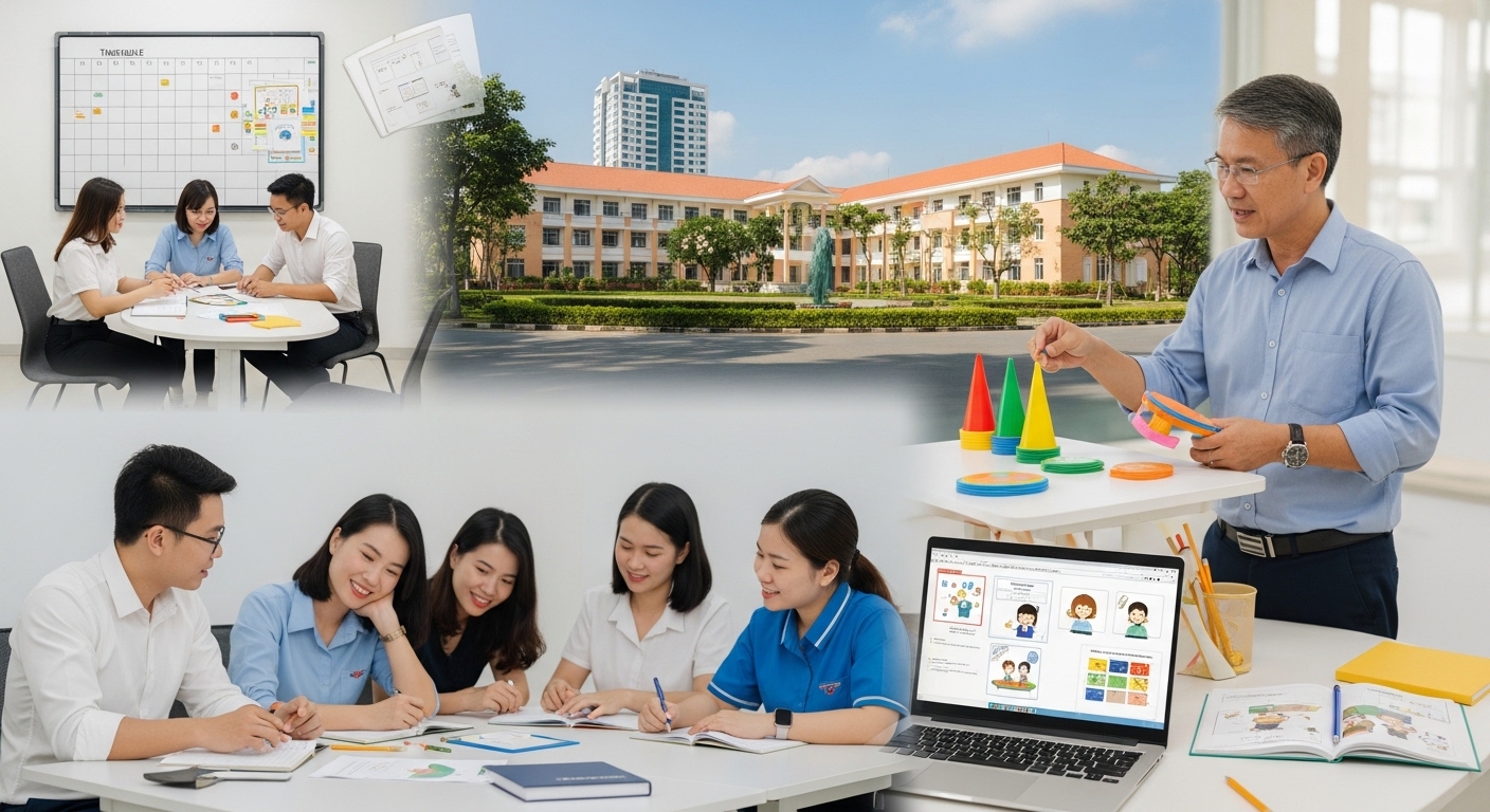 • Mẹo quản lý thời gian: Áp dụng ngay kiến thức vào trường đang làm (lập kế hoạch hoạt động, quản lý nhân sự). Sử dụng phần mềm quản lý học viên được giới thiệu trong khóa.