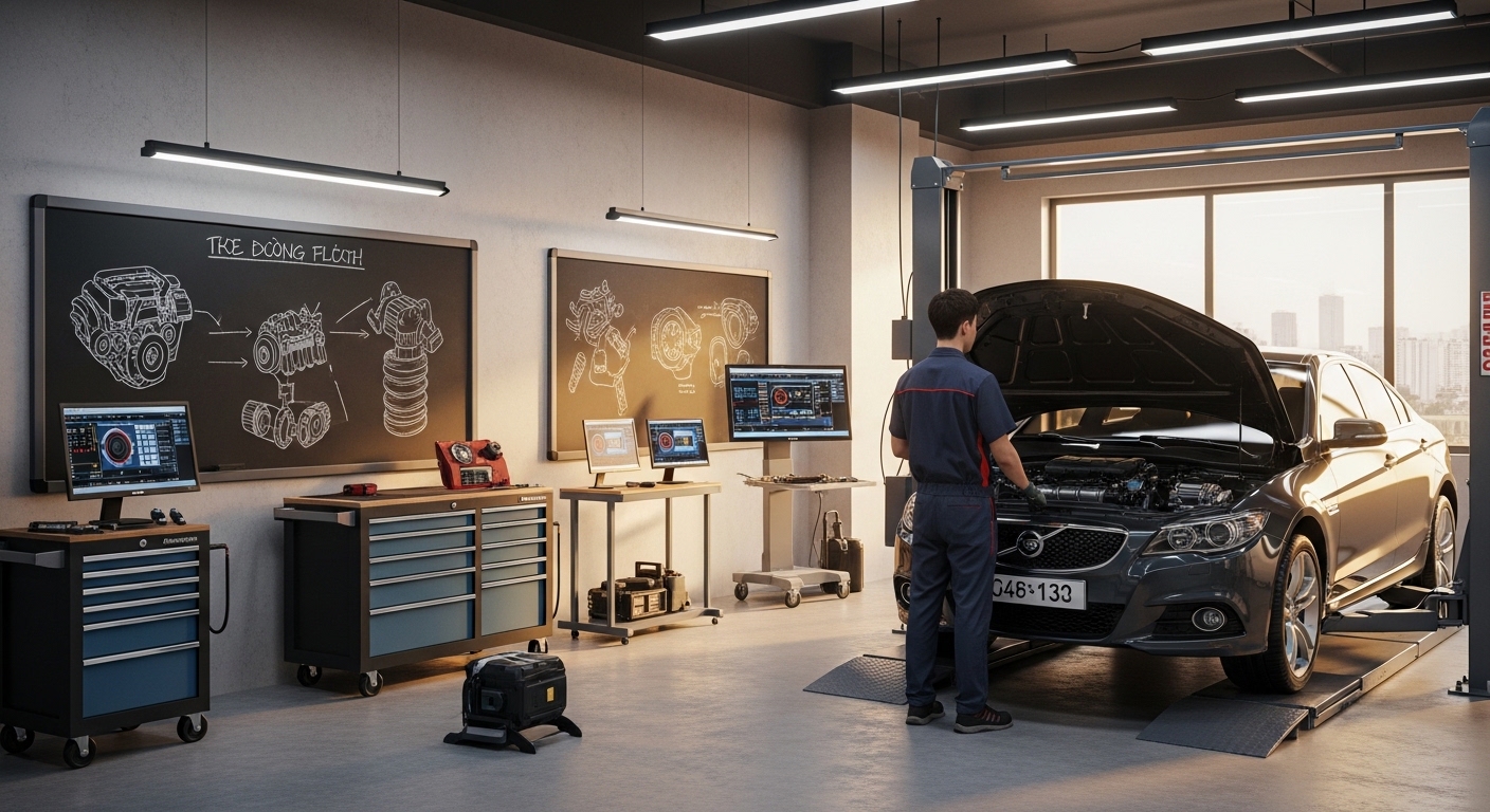 • Nội dung đào tạo: Cung cấp kiến thức chuyên sâu về công nghệ ô tô, từ cấu tạo, nguyên lý hoạt động của động cơ, các hệ thống truyền động, lái, phanh, đến kỹ năng chẩn đoán, bảo dưỡng và sửa chữa các dòng xe hiện đại.