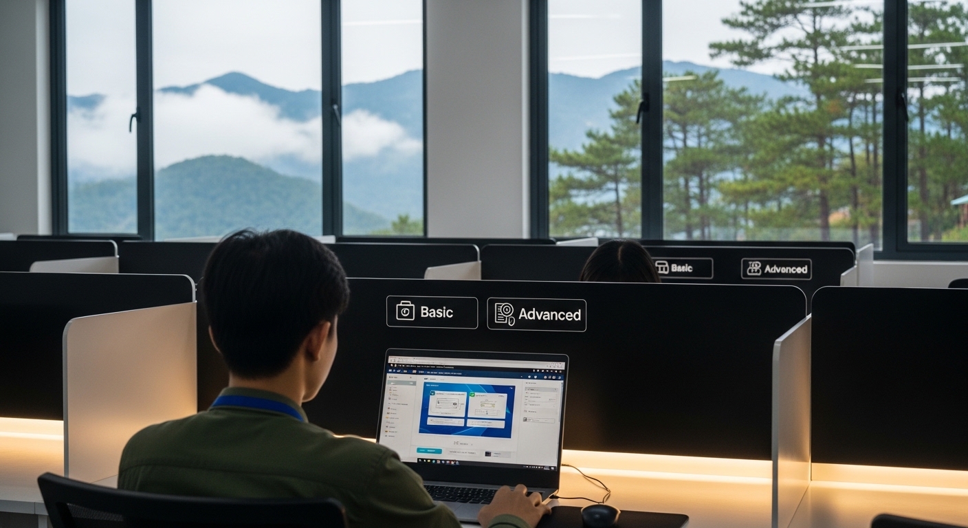 Không dừng lại ở mức cơ bản, trung tâm còn triển khai thành công các khóa đào tạo Chứng chỉ Tin học nâng cao như: Tin học văn phòng nâng cao (chuyên sâu Excel với macro, Power Query), Lập trình Python cơ bản, Thiết kế đồ họa với Canva/Photoshop, và Quản trị mạng nội bộ. Đặc biệt, phần thi thực hành từ xa được giám sát qua camera AI và giám thị trực tuyến, đảm bảo tính nghiêm túc như thi trực tiếp.