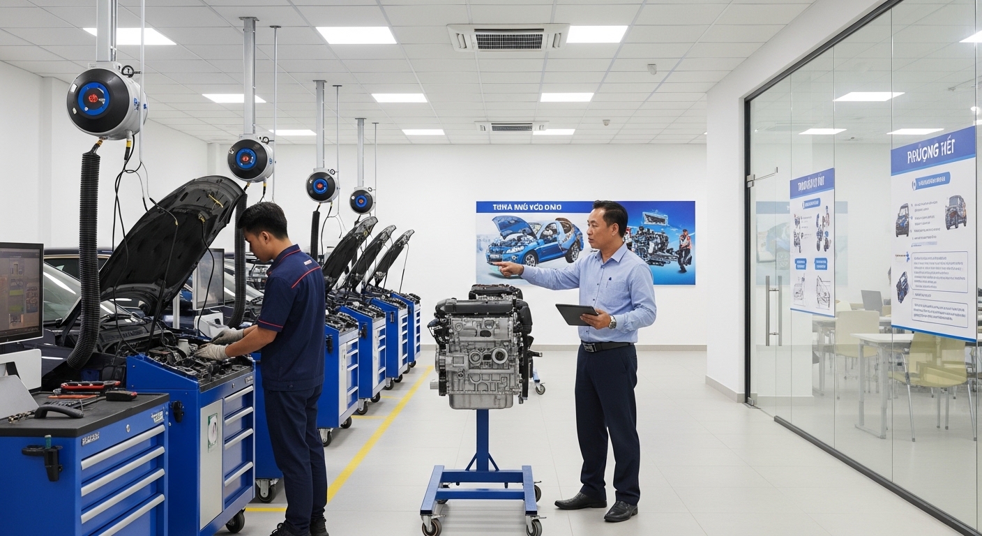 2. Tìm hiểu kỹ trang thiết bị thực hành: Ngành Công nghệ Ô tô là ngành học đặc thù, đòi hỏi kỹ năng thực hành cao. Một trường có xưởng thực hành hiện đại, được trang bị các dòng xe, động cơ và hệ thống chẩn đoán mới nhất sẽ là một lợi thế cực lớn.