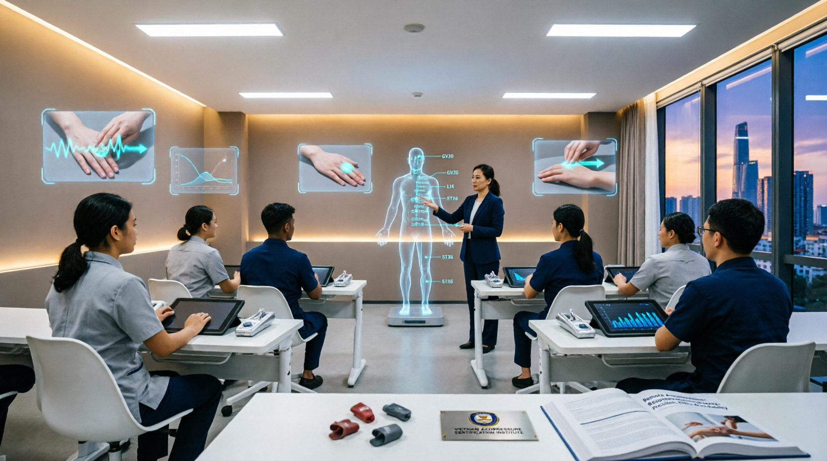 Module 2: Bệnh lý học và Nguyên lý trị liệu (Lớp học ảo tương tác): Phân tích nguyên nhân các hội chứng phổ biến (đau cổ vai gáy, thoái hóa cột sống, mất ngủ) và phác đồ can thiệp bằng áp lực vật lý (bấm huyệt).
