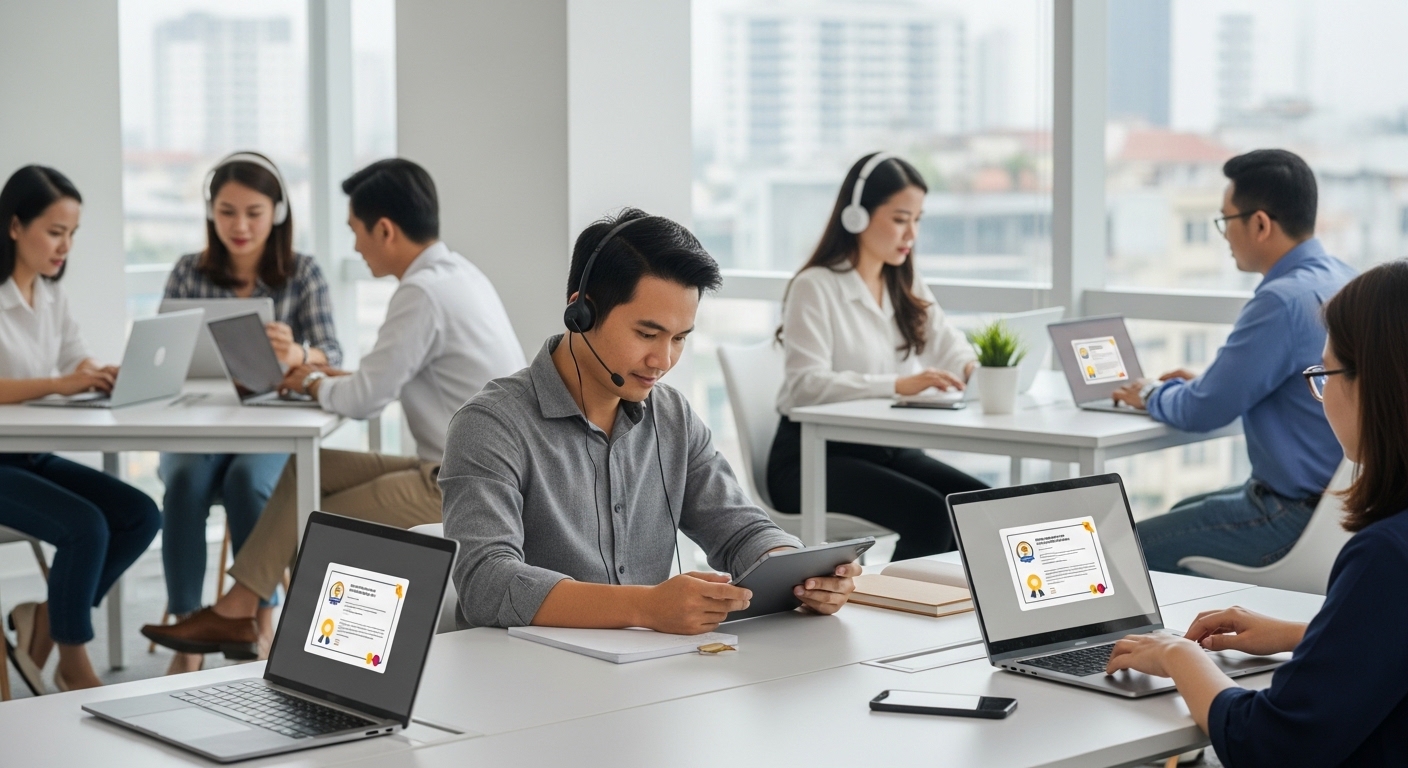 Gọi ngay hotline tư vấn 24/7 để được hỗ trợ chọn chứng chỉ phù hợp nhất với mục tiêu nghề nghiệp của bạn. Học phí dao động từ 2.500.000 – 4.500.000 VNĐ/khóa (tùy loại chứng chỉ và hình thức học).