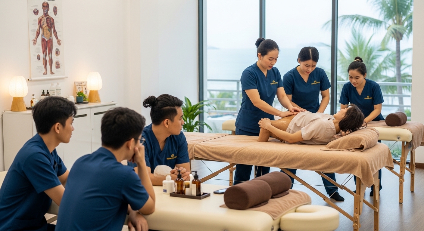 Xoa bóp bấm huyệt không chỉ là một nghề mang lại thu nhập ổn định mà còn là một “thiên chức” chăm sóc sức khỏe cộng đồng. Thấu hiểu nhu cầu của học viên tại Phú Yên – nơi mà thời gian và tài chính luôn là bài toán cân não, tôi xin chia sẻ chi tiết về chương trình đào tạo Chứng chỉ Xoa bóp bấm huyệt hệ vừa học vừa làm, giúp bạn có cái nhìn rõ ràng nhất trước khi đưa ra quyết định.