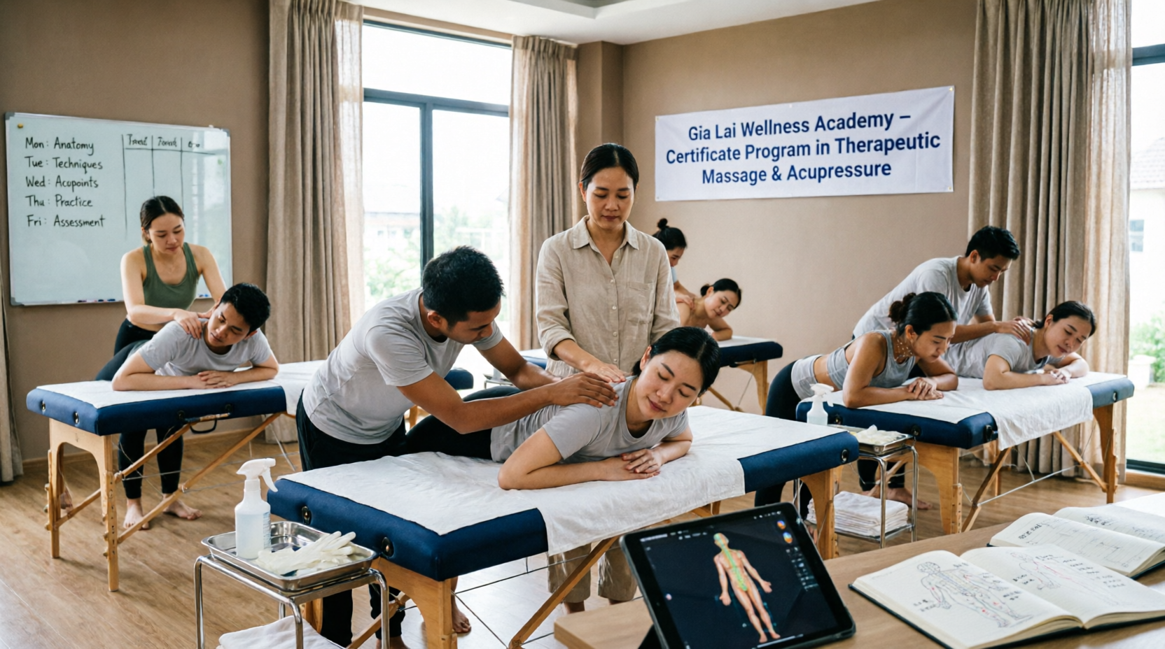 Giai đoạn 4 (sau 1 năm): Tự kinh doanh. Mở spa, dịch vụ xoa bóp tại nhà hoặc kết hợp du lịch sức khỏe. Nhiều học viên tại Gia Lai đã thành công với mô hình này, thu nhập ổn định 30-50 triệu/tháng.