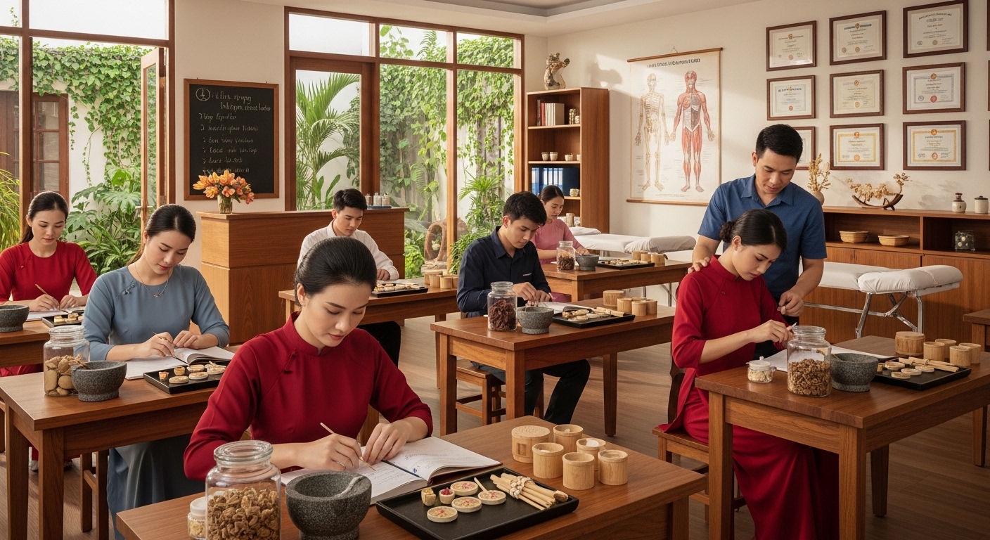 Đặc biệt, học viên đăng ký qua trung tâm thường được hỗ trợ giải đáp cặn kẽ về các chính sách miễn giảm học phí, cơ hội thực tập tại các bệnh viện y học cổ truyền lớn.